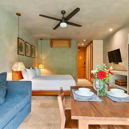 Seremonia Origen - Tulum Studio With Plunge Pool lägenhet, som erbjuder takbassäng och uteplats, ligger i Tulum. Gäster kan hitta Tulum arkeologisk utgrävningsplats inom 6 km bort och Cenote Cristal inom ca 3 km från boendet.